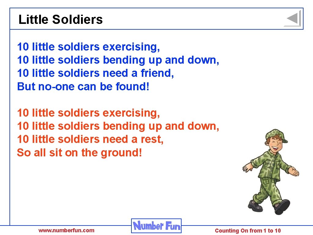 Source: thecrdnia.pages.dev Five Little Soldiers Nursery Rhyme With Animated Lyrics Nursery Rhyme Baby Rhyme Nursery , Nine Little Soldier Boys stayed up very late; One overslept himself and then there were eight. In "Ten Little Soldiers," readers can bring their own experiences, interpretations, and emotions to the poem
